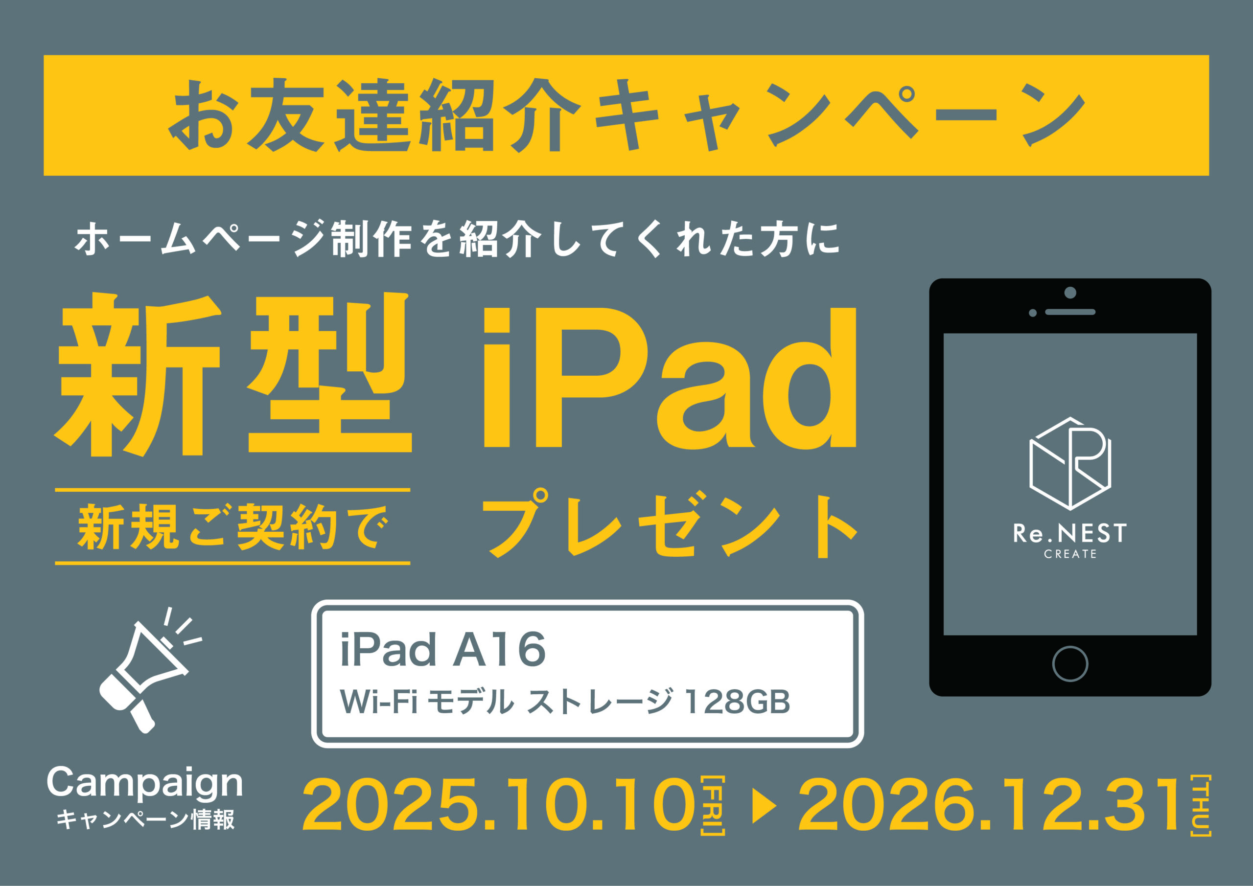 この機会にぜひ、Re.NEST CREATEのホームページ制作をお知り合いにご紹介ください。